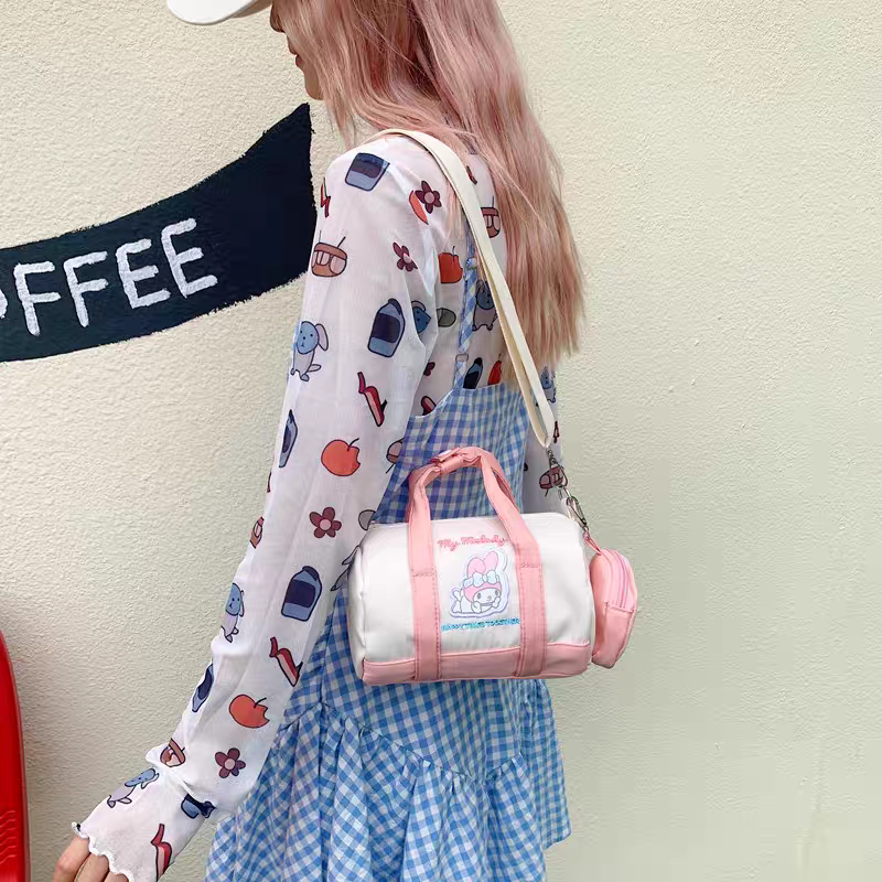 Featuring cute Sanrio-inspired characters, smooth zippers, and comfortable handles, this bag is both fashionable and functional.