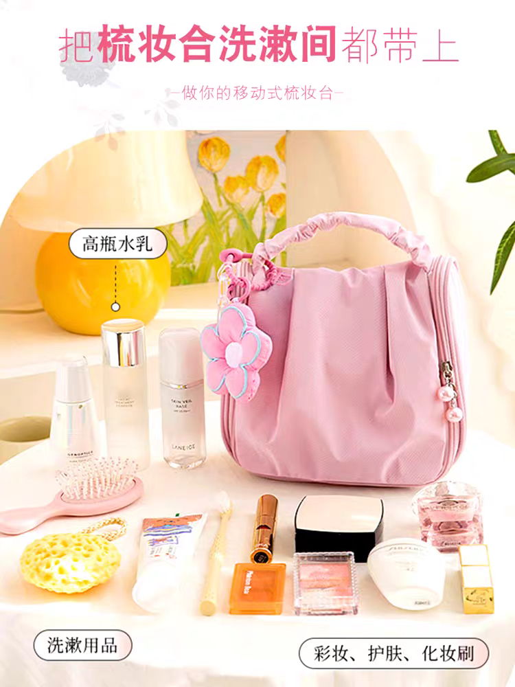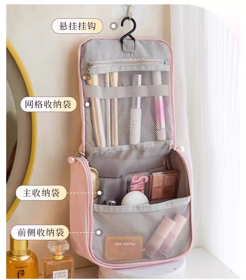Design: Solid color, waterproof, open suspension. It can be used as a makeup storage bag, and is essential for travel and business trips.